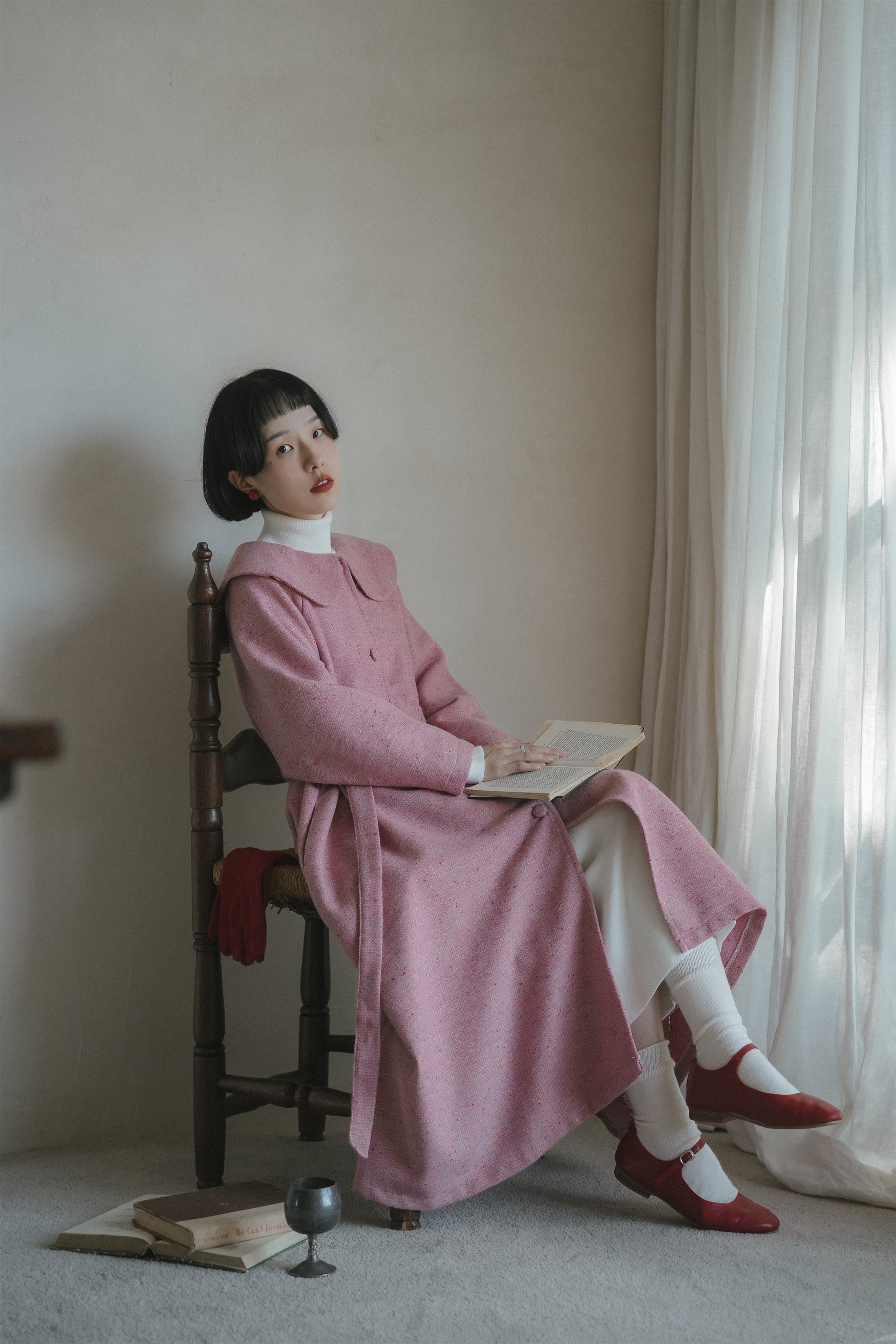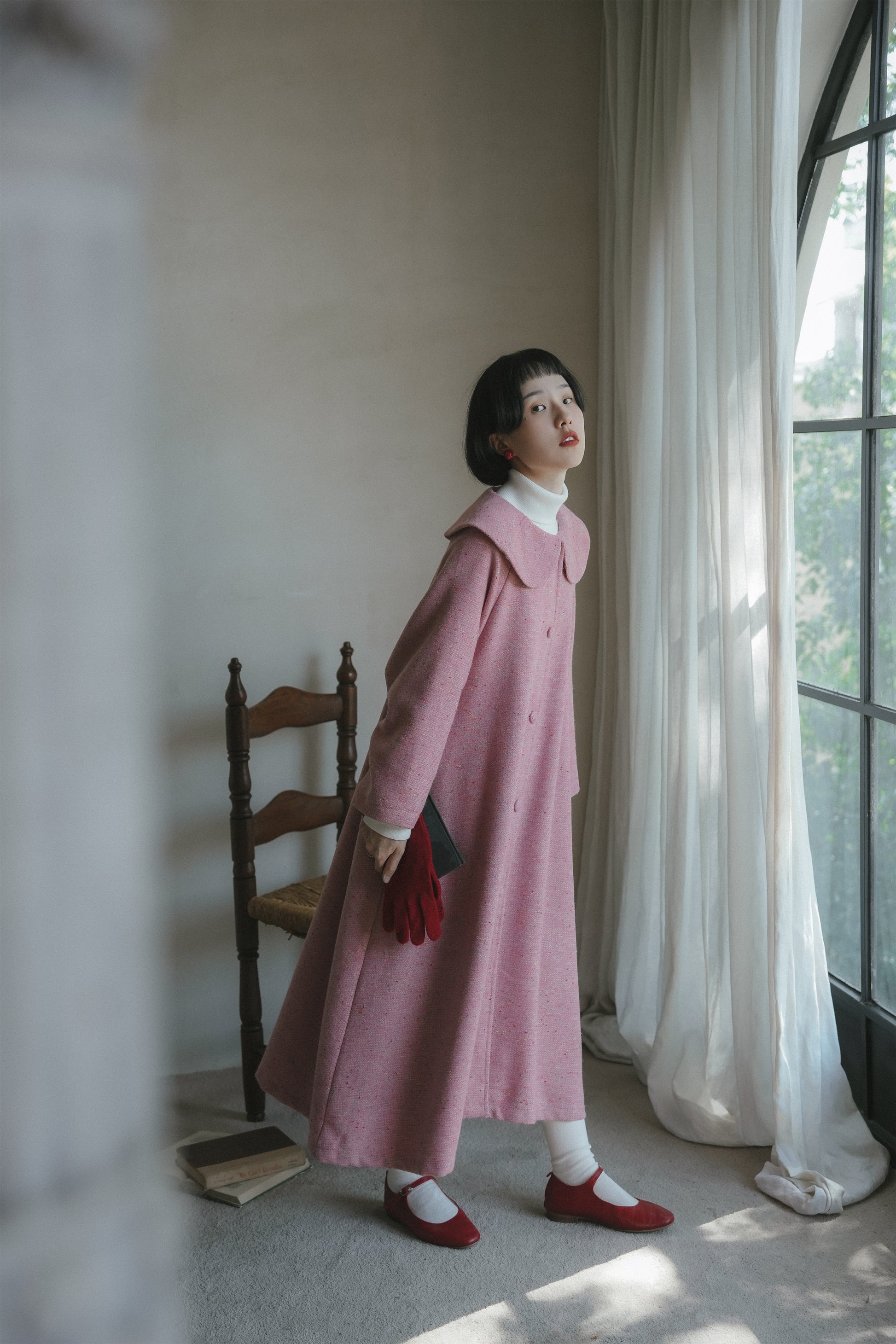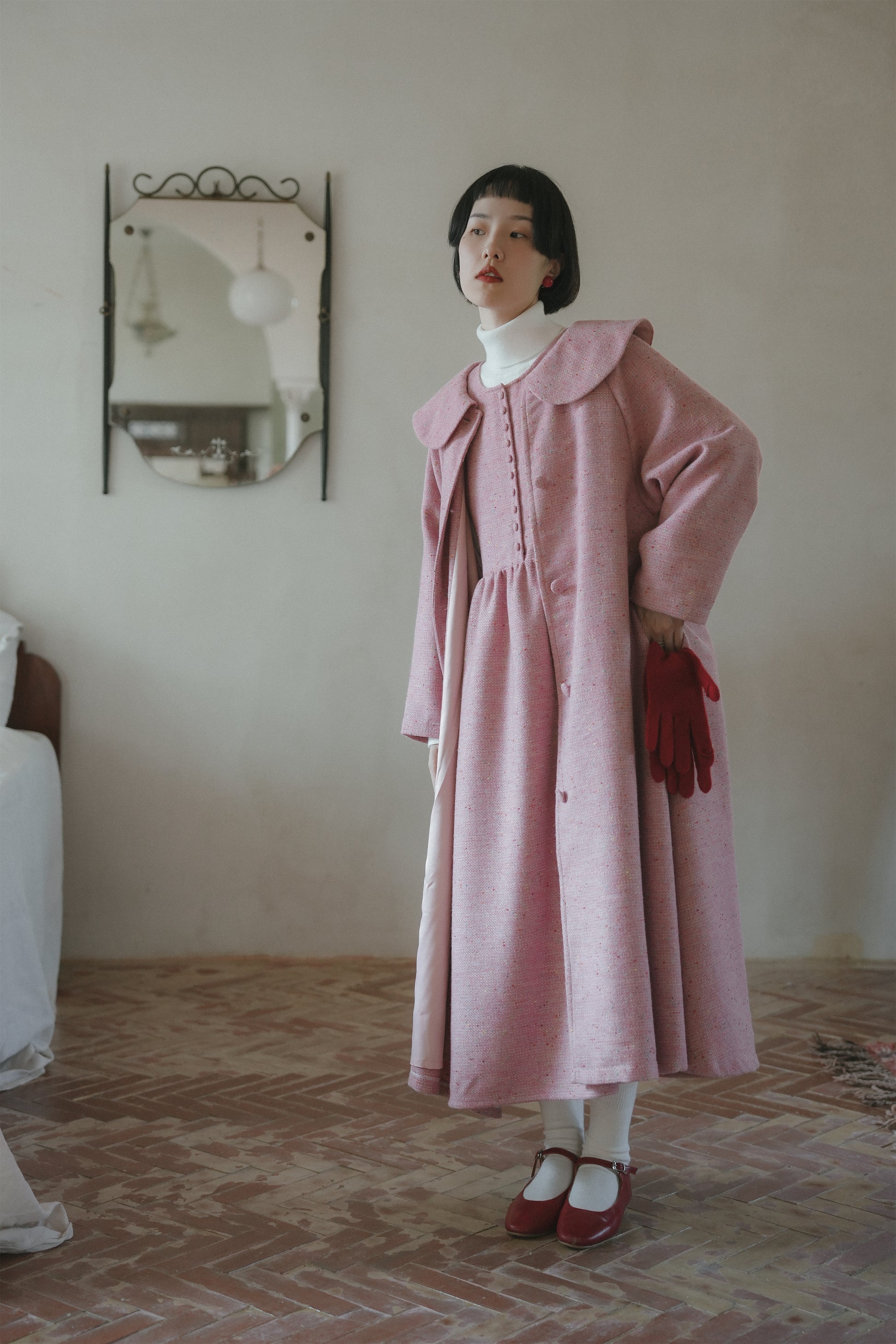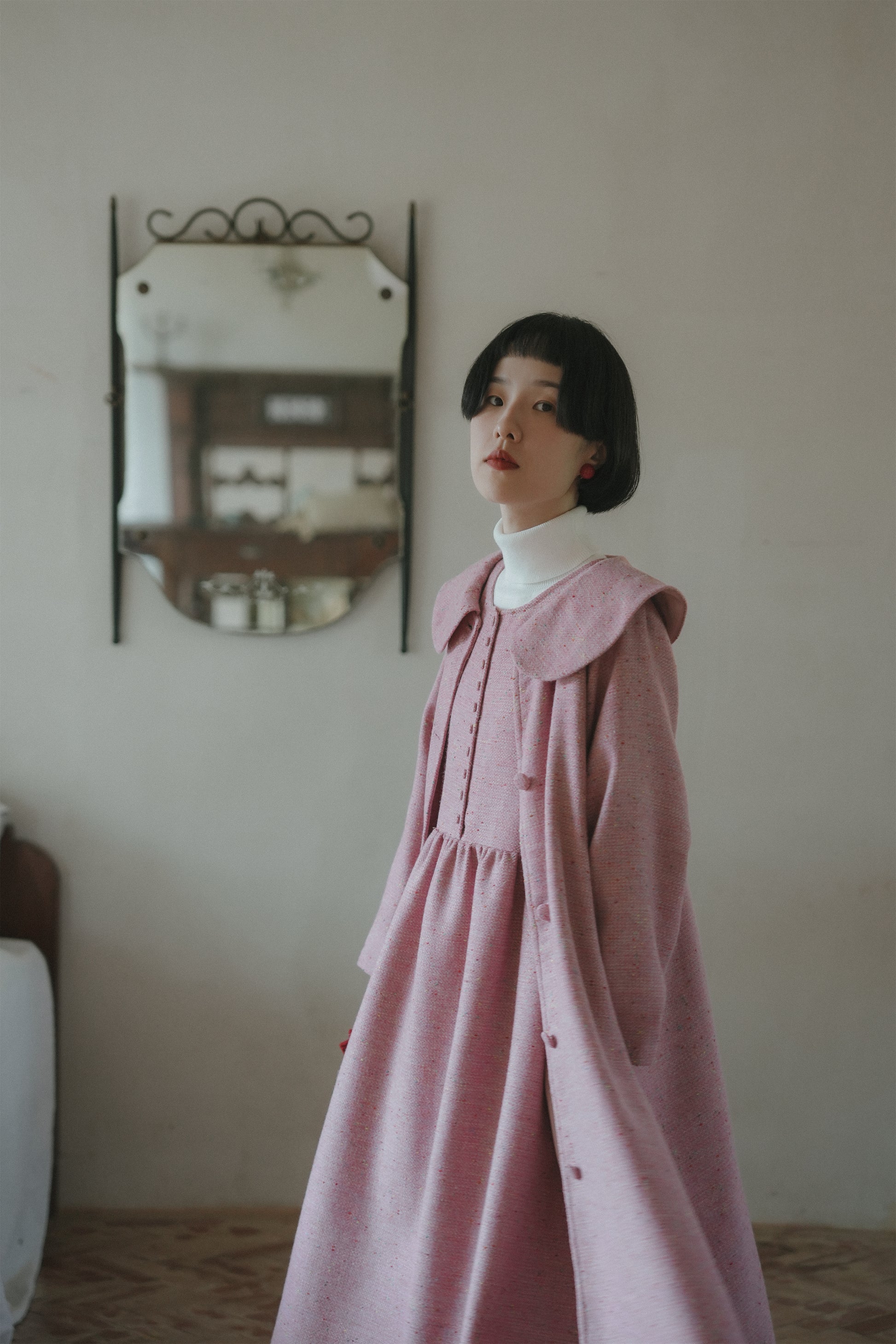 ピンクウールコート•6546250809/ピンクノースリーブワンピース•6546250808/ハイネックニットワンピース•9833200904(12月上旬発送予定)