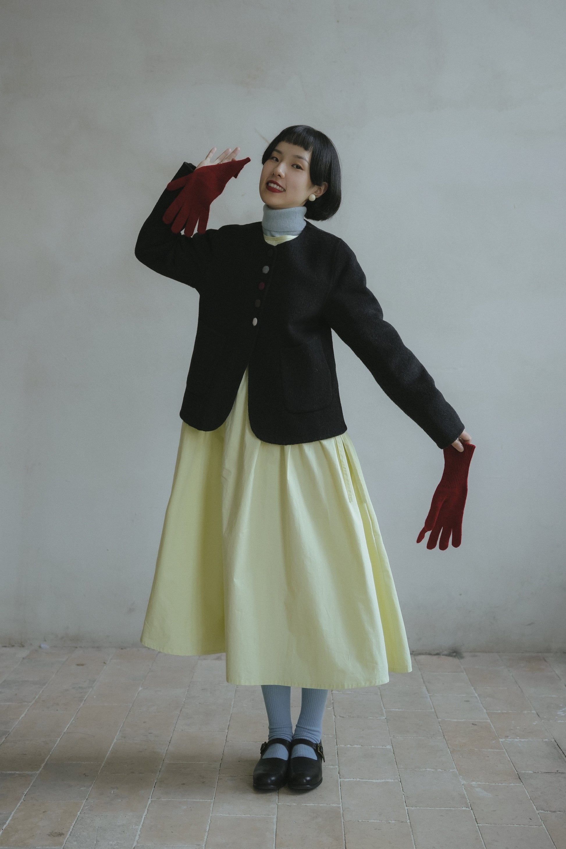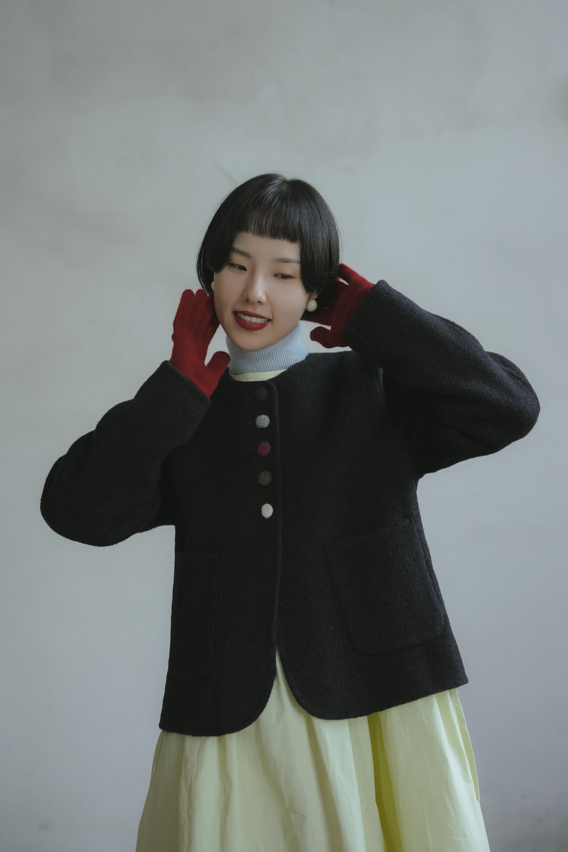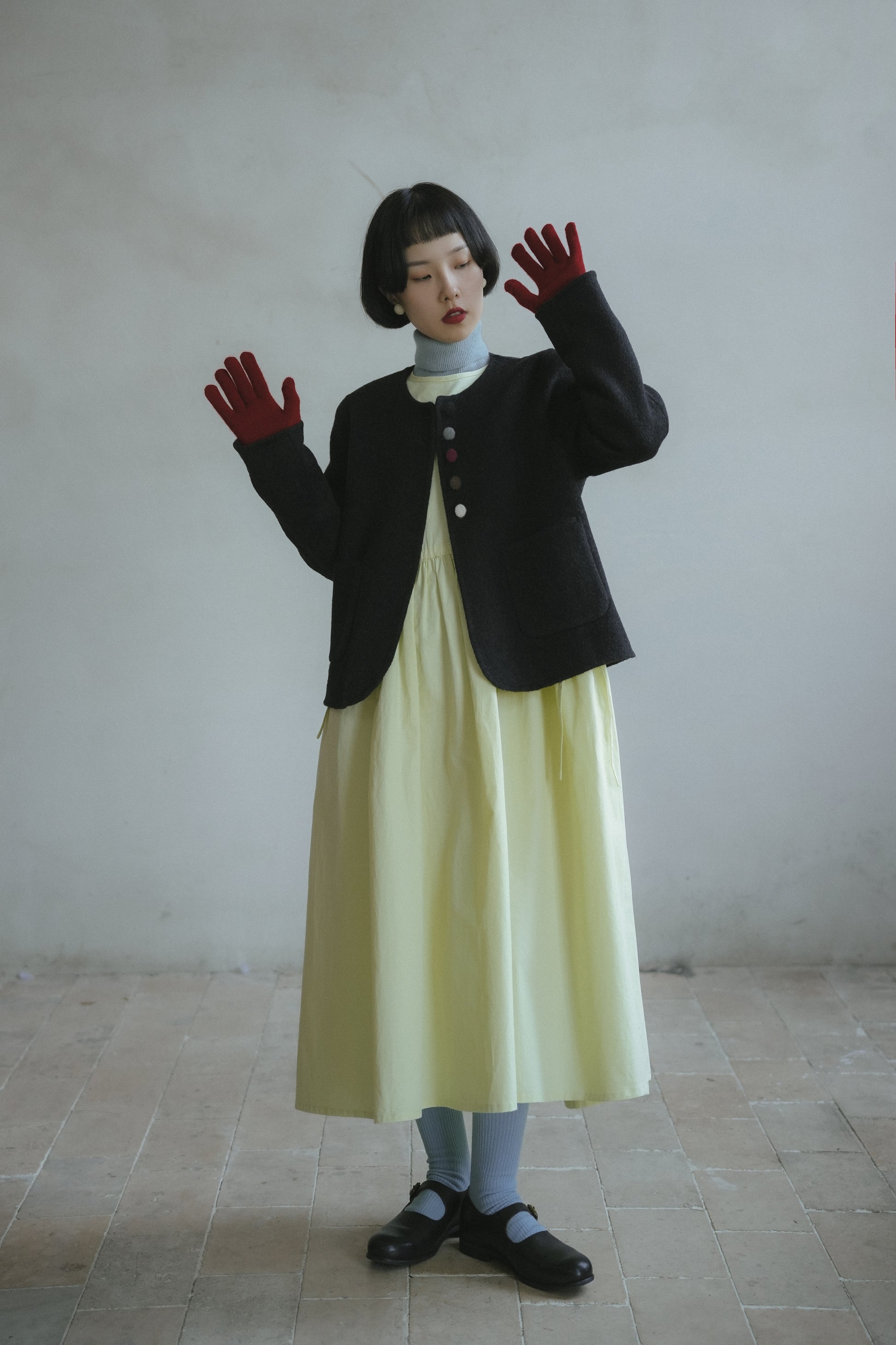 ウールショートコート•7869251103とブルーウールニット·7288250566とイェローワンピース•9896250811