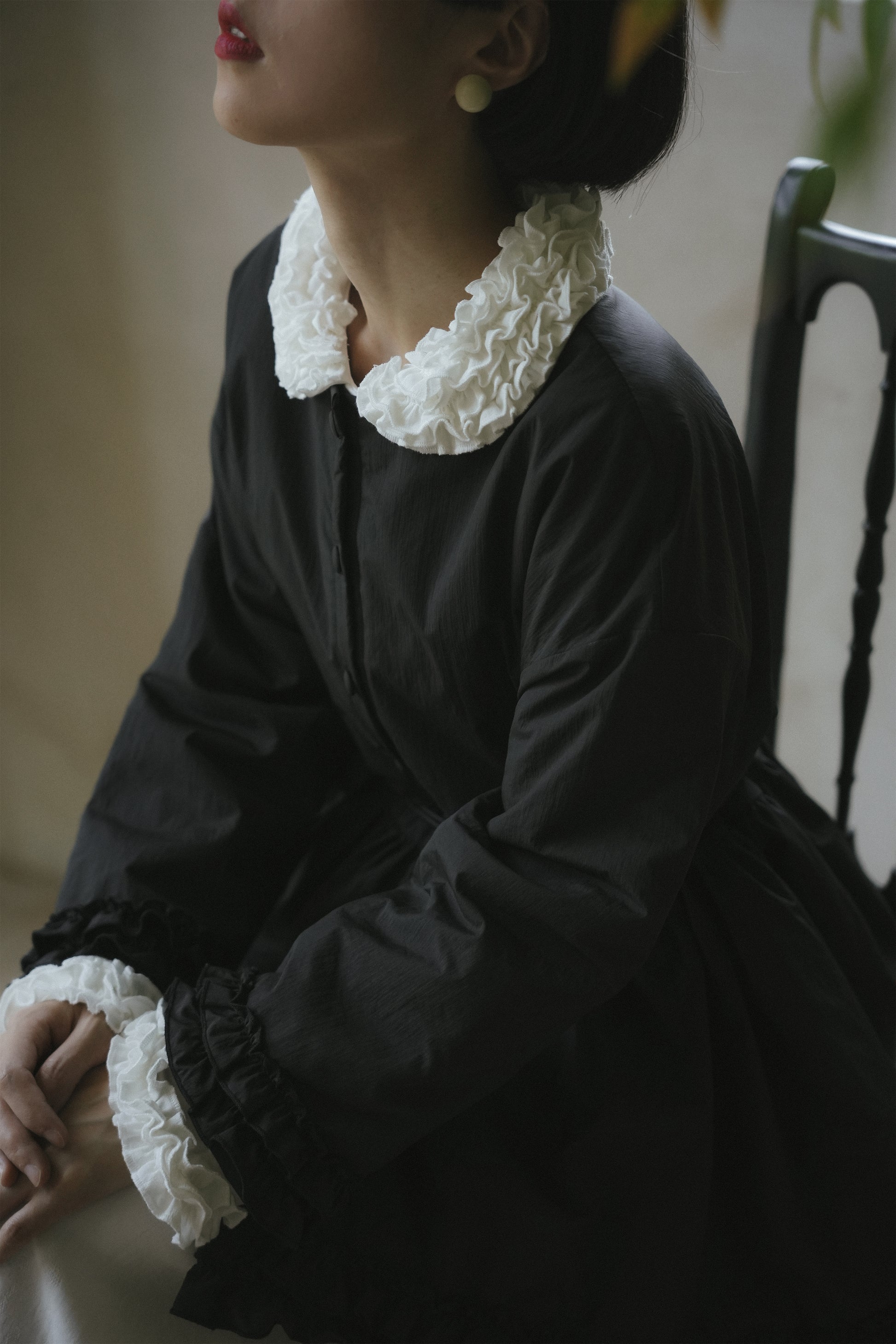 中綿コート•8489250812と黒いワンピース•9836250803と白いワンピース•9833250807