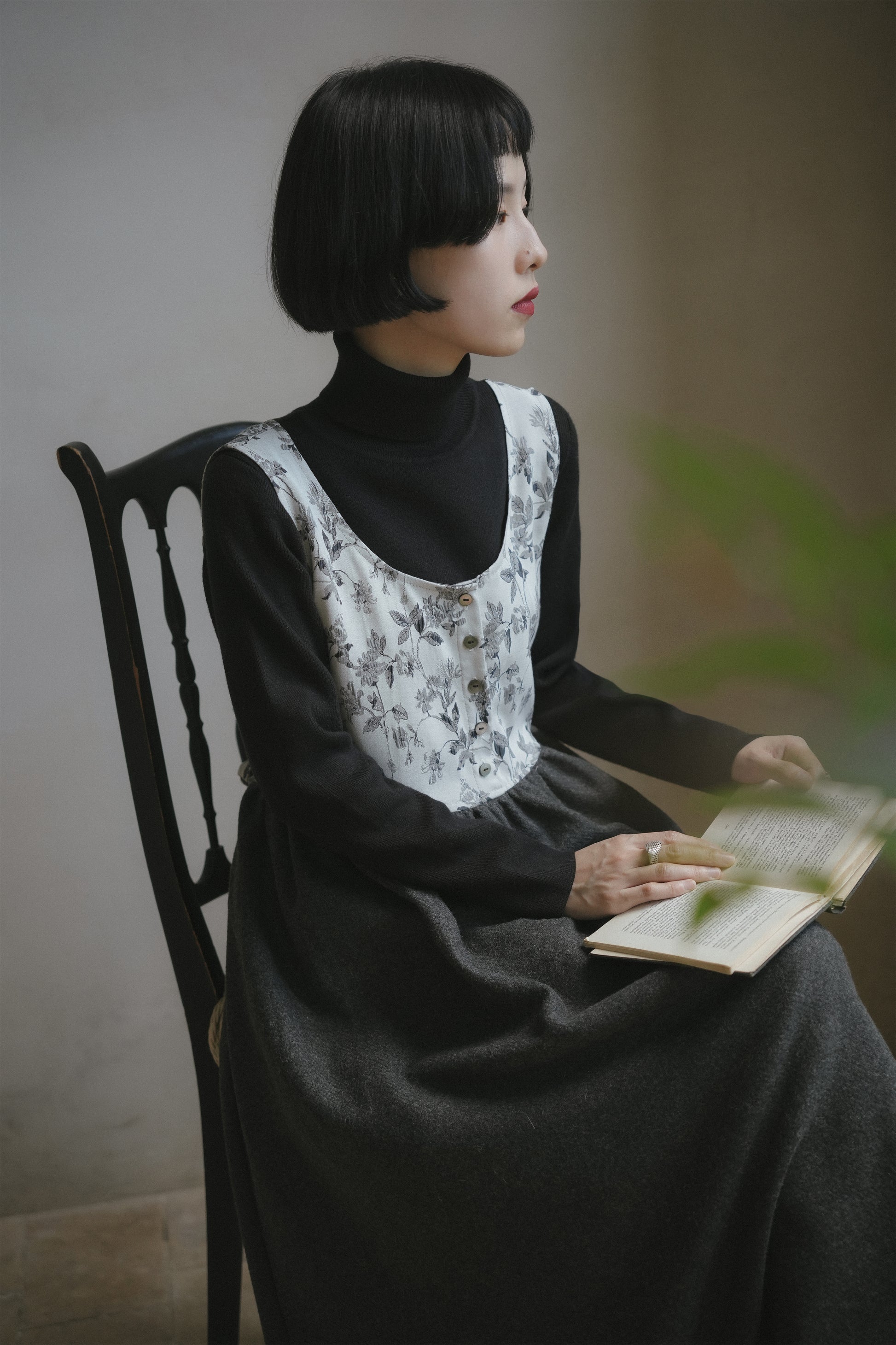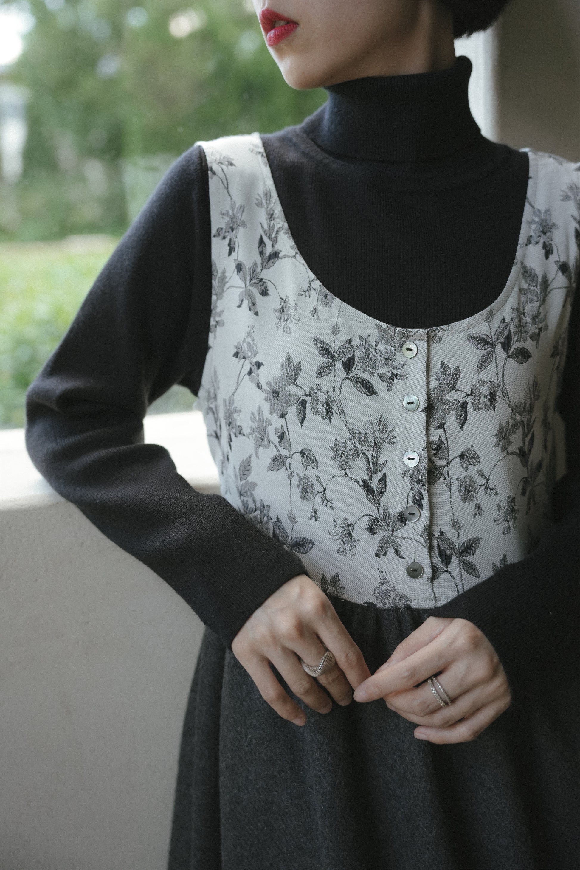 花柄ジャンパースカート•9876250875と黒いニットワンピース•9843200905(11月下旬発送予定)